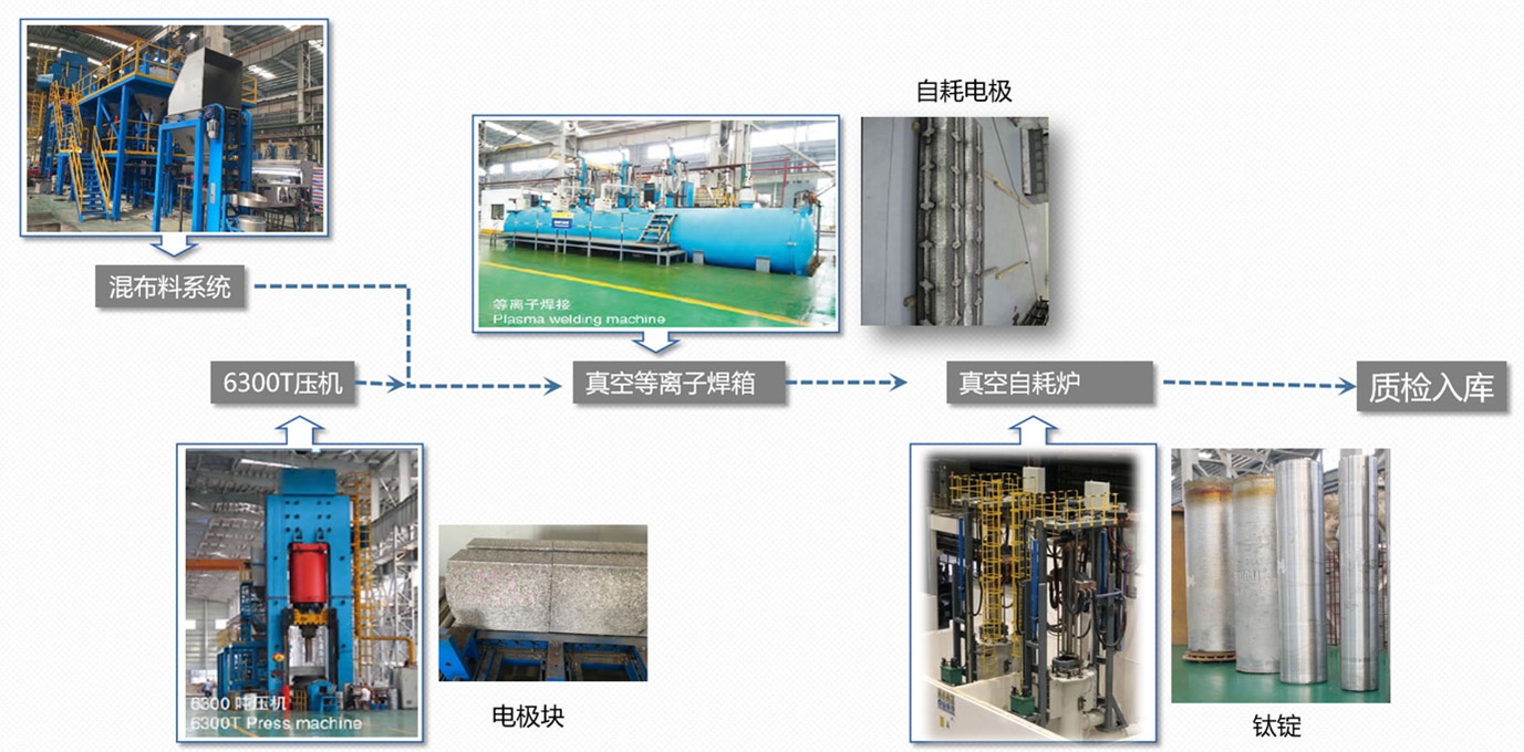 1. 开展装备建设和工艺探索探索,, ,提高钛及钛合金铸锭纯净度和均匀性;